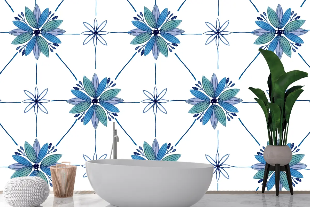 Suluboya Süs Çiçeği Banyo Duvar Kağıdı