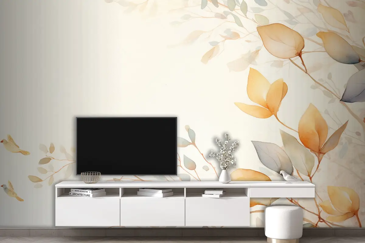 Suluboya Tasarımında Okaliptüs Yaprakları Tv Arkası Duvar Kağıdı