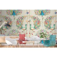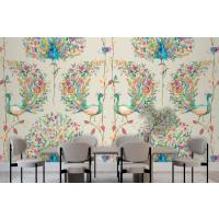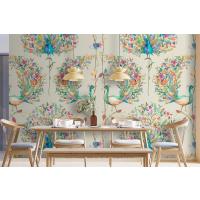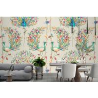 Suluboya Tavus Kuşu Ve Çiçek Yemek Odası Duvar Kağıdı