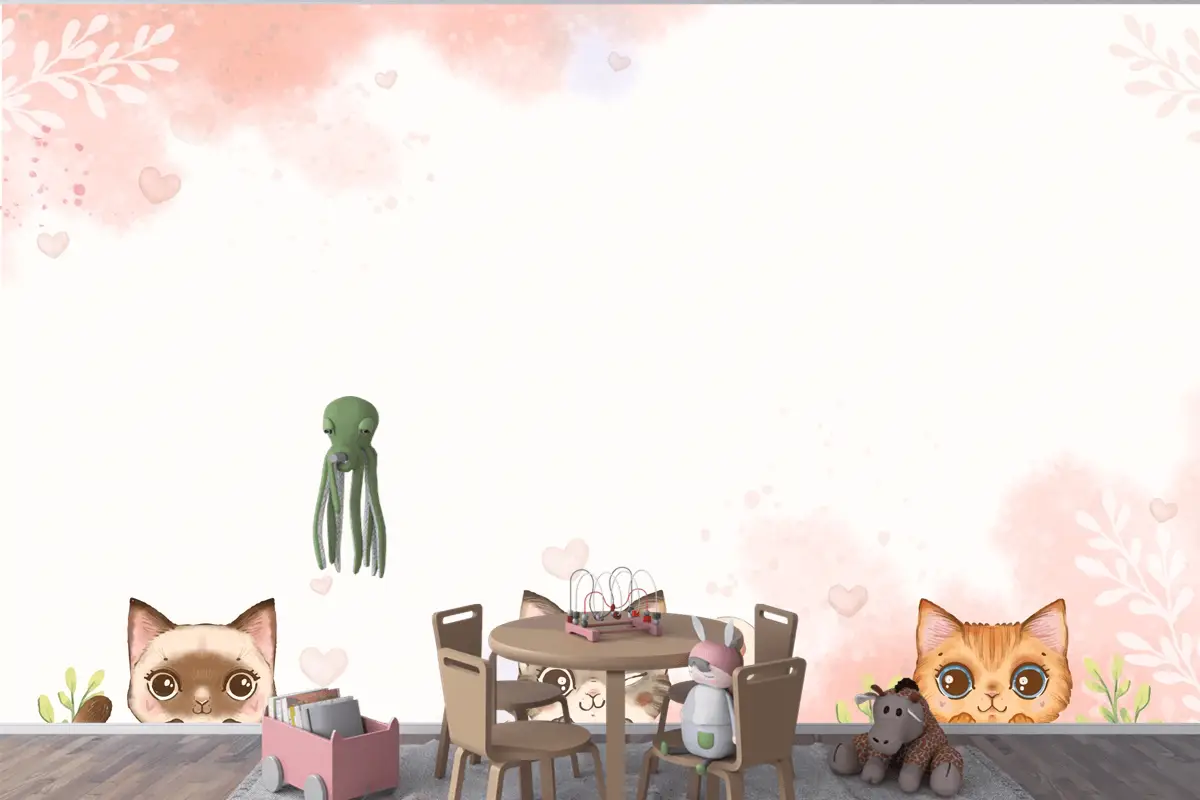 Suluboya Uluslararası Kedi Günü Çocuk Odası Duvar Kağıdı