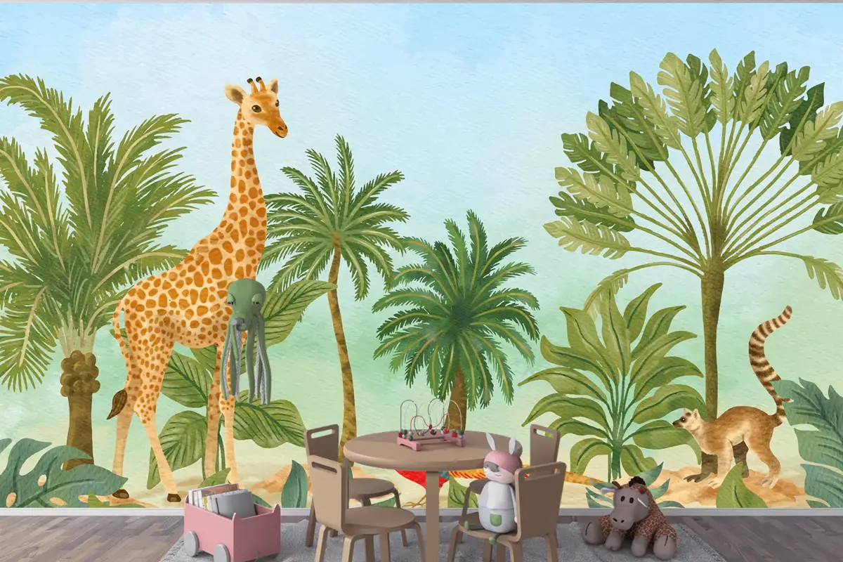 Suluboya Yaban Hayatı Arka Plan Boys Çocuk Odası Duvar Kağıdı