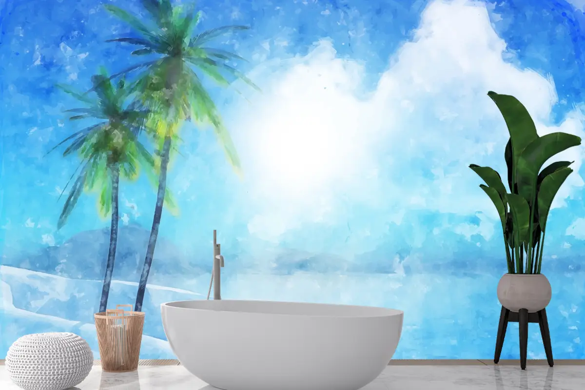Suluboya Yaz Tropikal Banyo Duvar Kağıdı