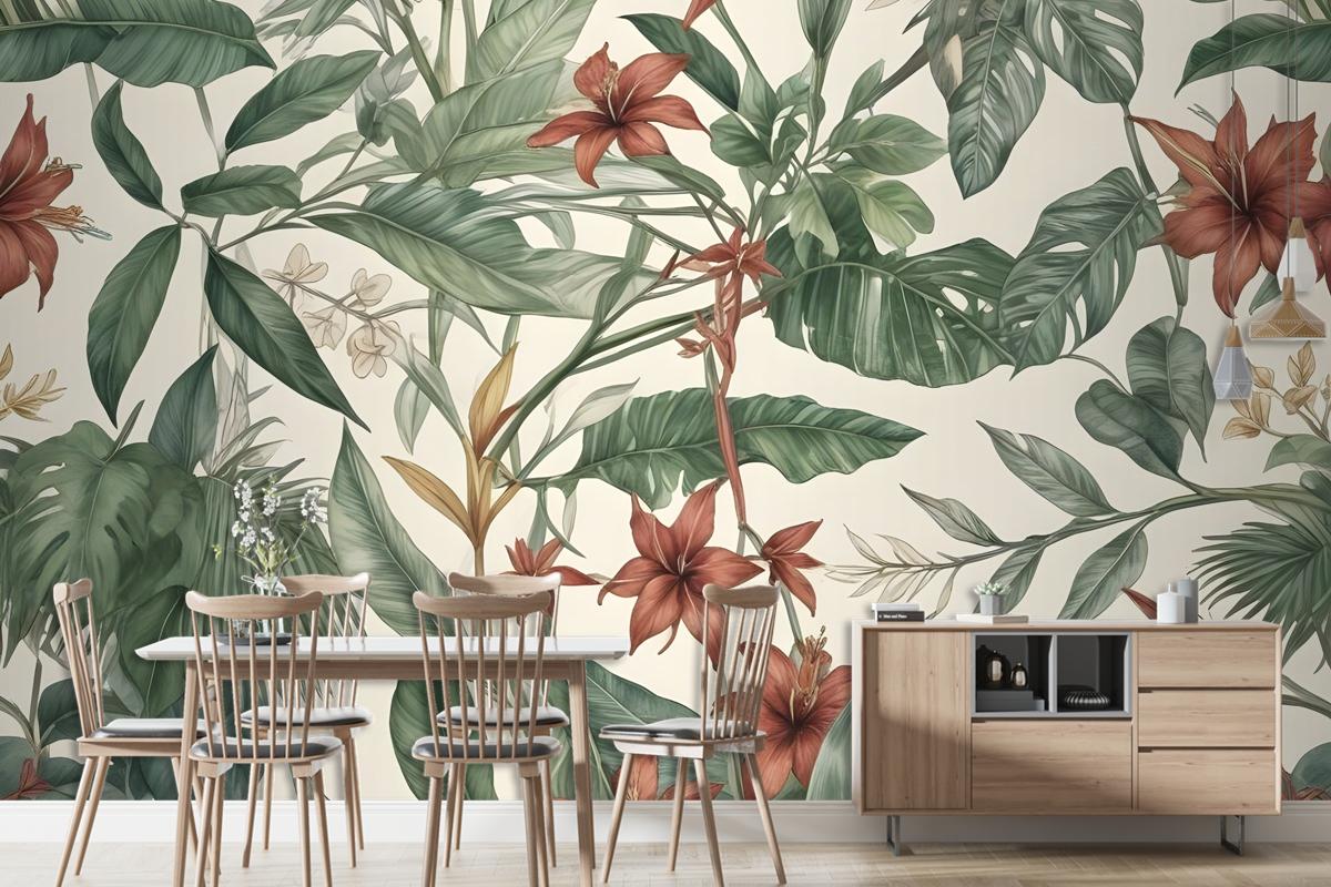 Suluboya Yeşil Tropikal Yapraklar Duvar Kağıdı