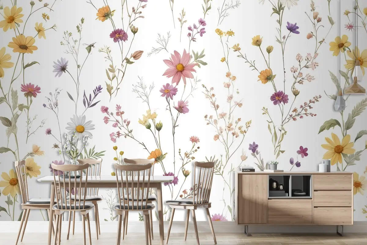 Suluboya Yumuşak Kır Çiçekleri Duvar Kağıdı