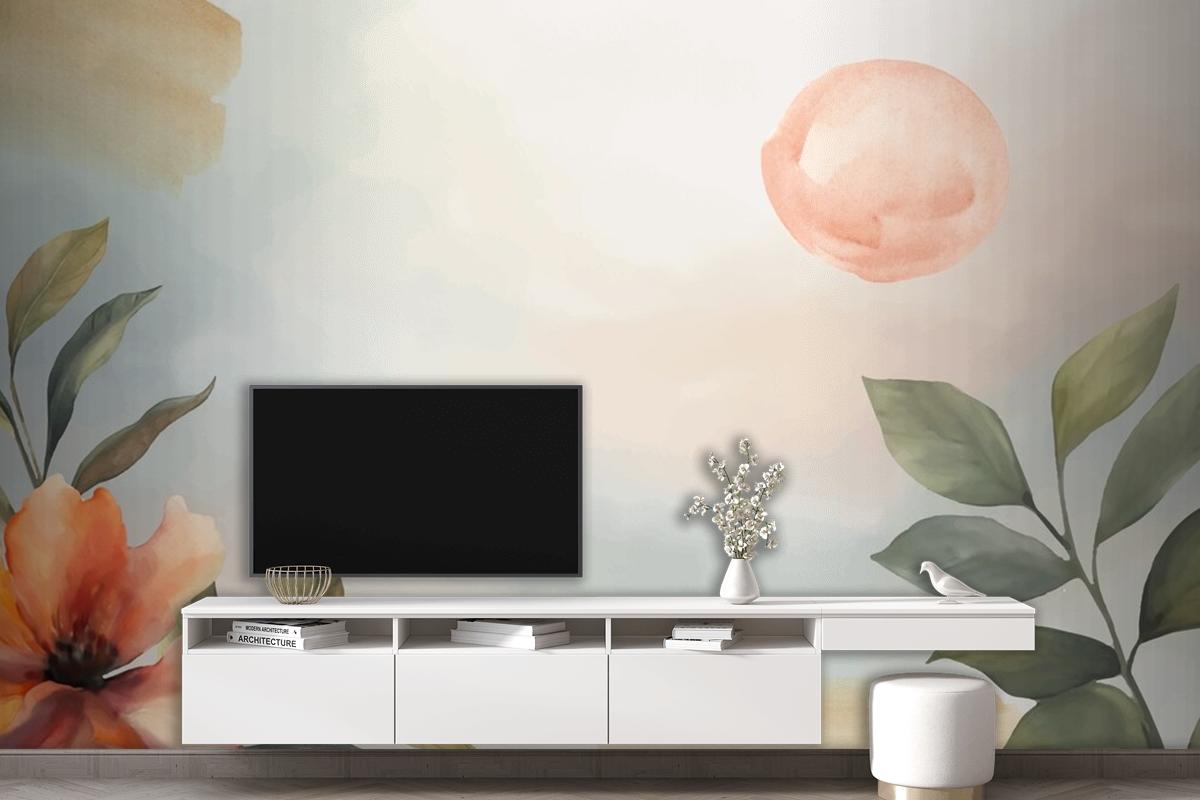 Suluboya Yumuşak Toprak Tonları Arka Plan Oturma Odası Duvar Kağıdı