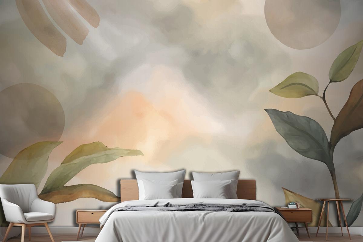 Suluboya Yumuşak Toprak Tonları Arka Plan Yatak Odası Duvar Kağıdı