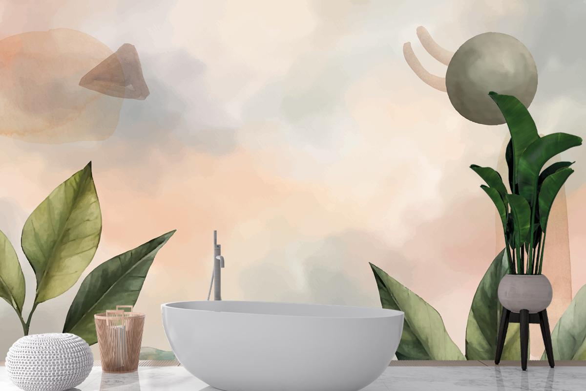 Suluboya Yumuşak Toprak Tonları Banyo Duvar Kağıdı
