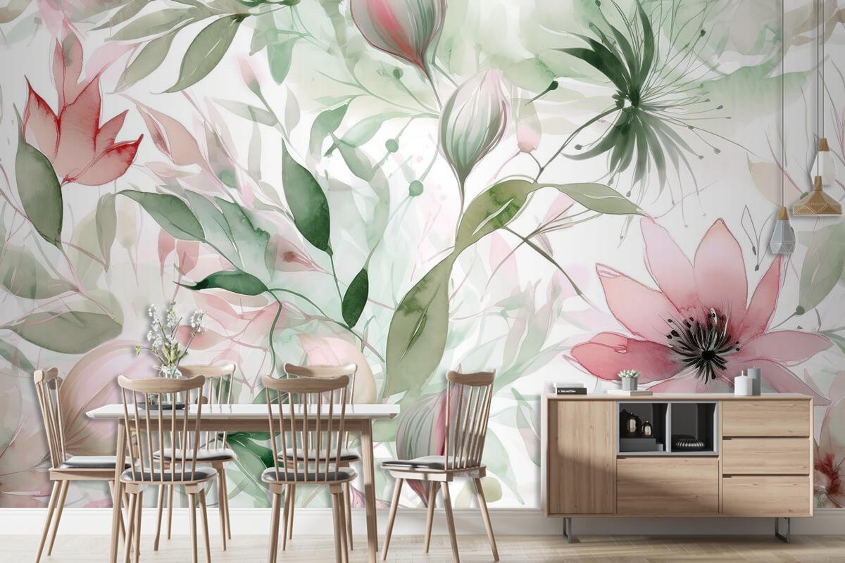 Tarla Çiçekleri Peygamberçiçekleriyle Dikişsiz Desen Duvar Kağıdı