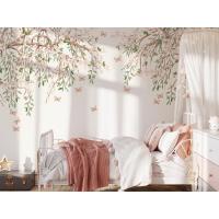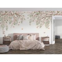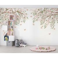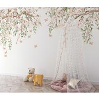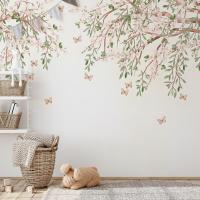 Tek Parça Kumaş Tekstil - Kelebekli Kiraz Çiçeği Çocuk & Bebek & Genç Odası Duvar Kağıdı