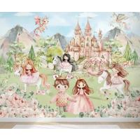 Tek Parça Kumaş Tekstil - Prenses ve Şato Kız Çocuk Odası Duvar Kağıdı