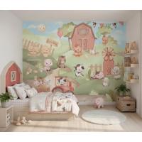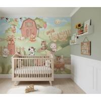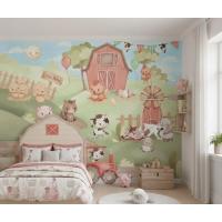 Tek Parça Kumaş Tekstil - Sevimli Çiftlik Hayvanları Bebek & Çocuk Odası Duvar Kağıdı