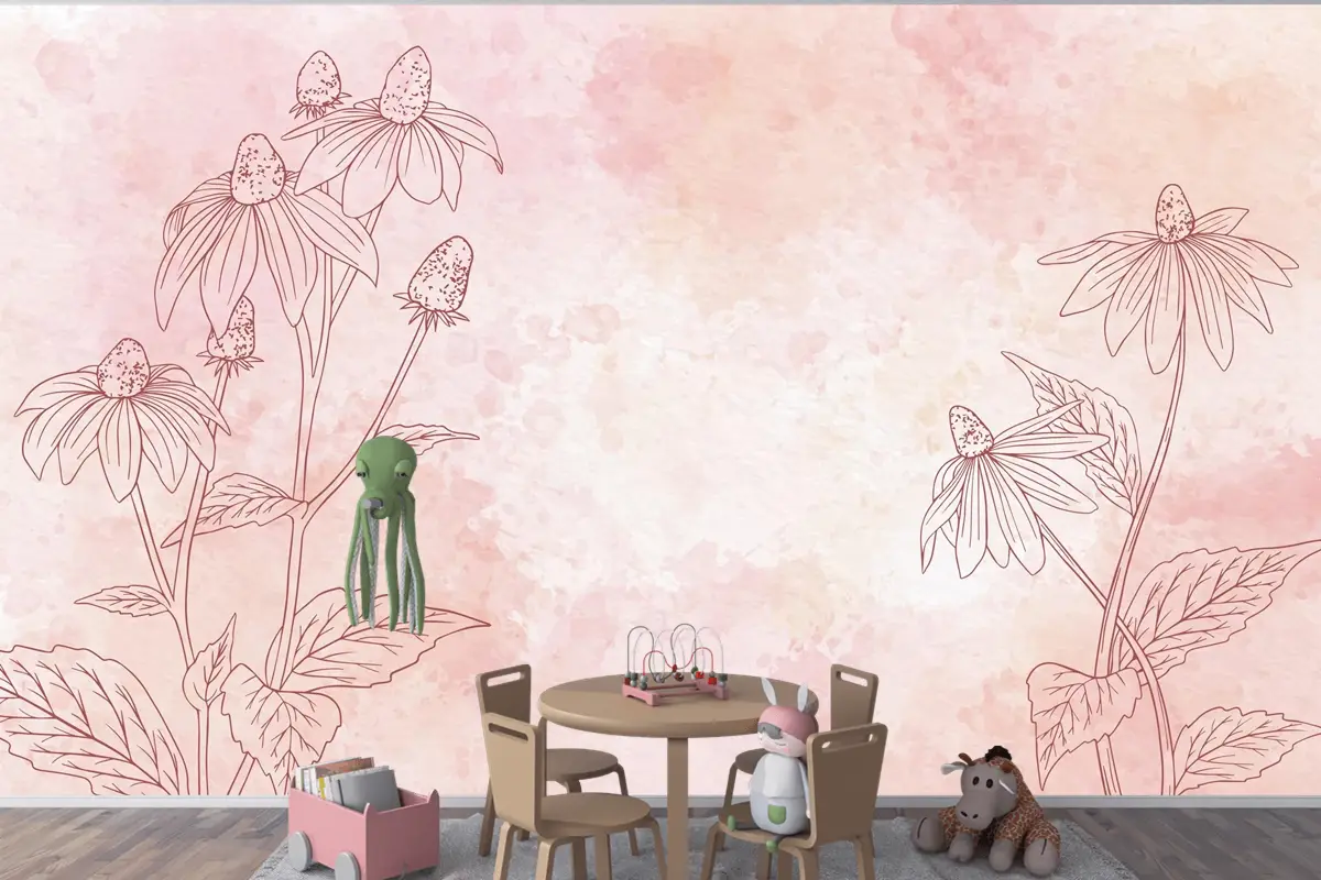 Tek Renkli Çocuk Odası Duvar Kağıdı Nde Suluboya Çiçek Arkaplan