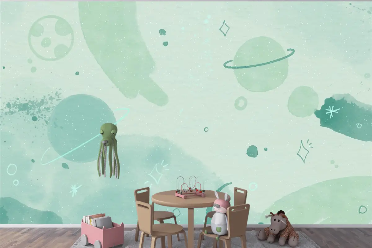Tek Renkli Suluboya Galaxy Çocuk Odası Duvar Kağıdı