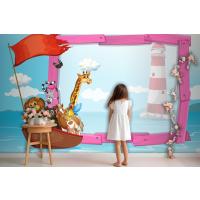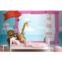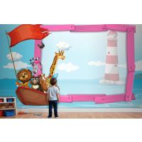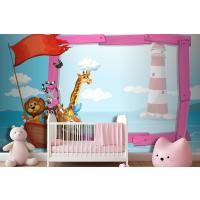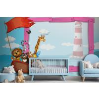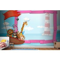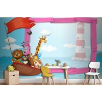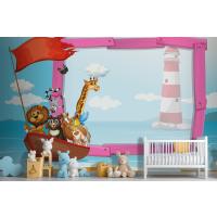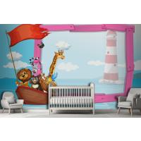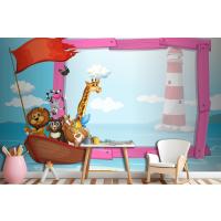 Teknede Vahşi Hayvanların Bulunduğu Çerçeve Çocuk Odası Duvar Kağıdı