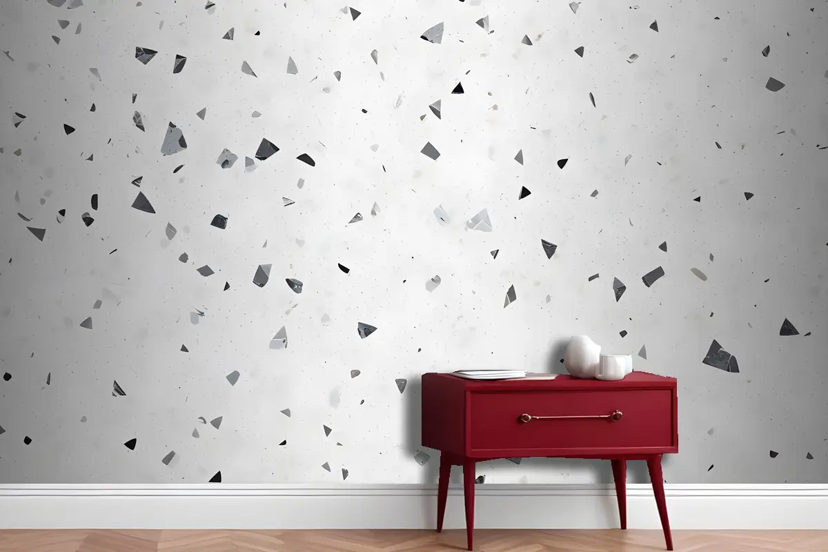 Terrazzo Malzemesine Benzeyen Beyaz Ve Gri Benekli Yüzeyin Yakın Çekim Görünümü Antre Hol Koridor Duvar Kağıdı
