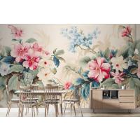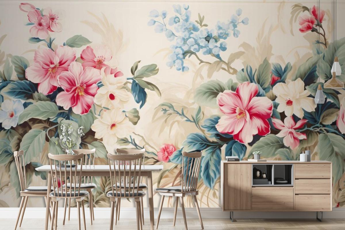 Tropikal Çiçekler Ve Yapraklarla Çiçek Duvar Kağıdı