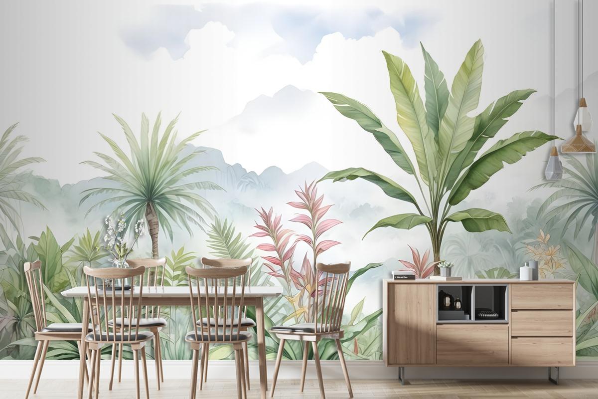 Tropikal Orman Manzarası Ve Muz Ağaçları Duvar Kağıdı