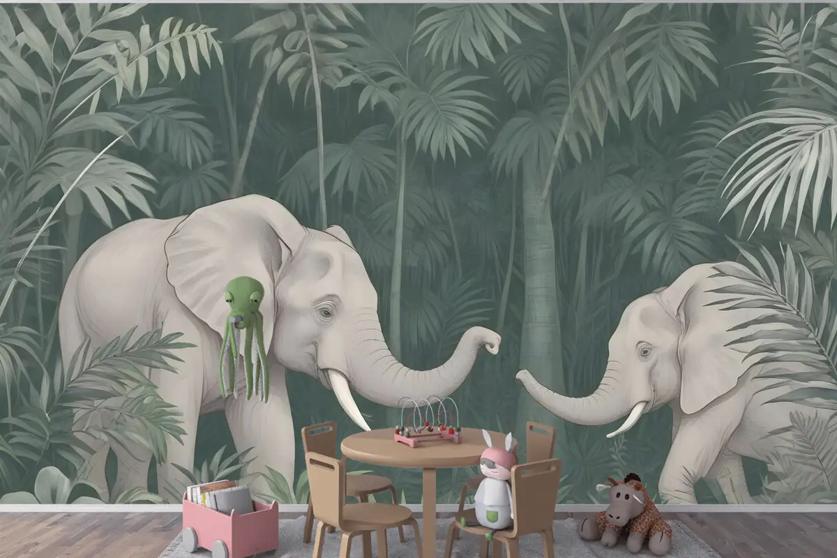 Tropikal Ormandaki Sevimli Filler Çocuk Odası Duvar Kağıdı