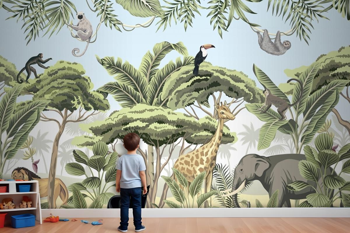 Tropikal Vahşi Orman Çocuk Odası Duvar Kağıdı