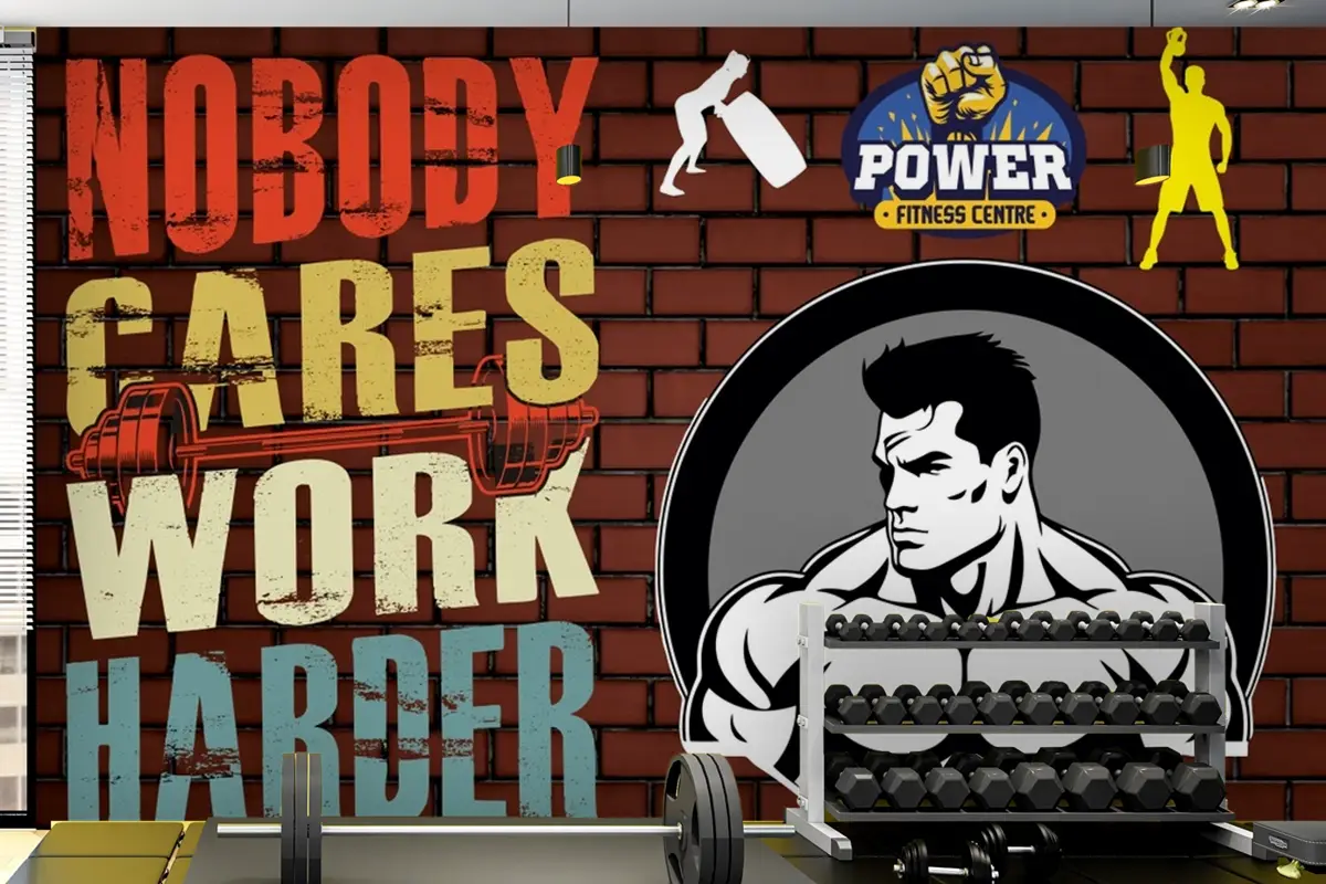 Tuğla Duvar Motivasyon Yazılı Spor Salonu Duvar Kağıdı