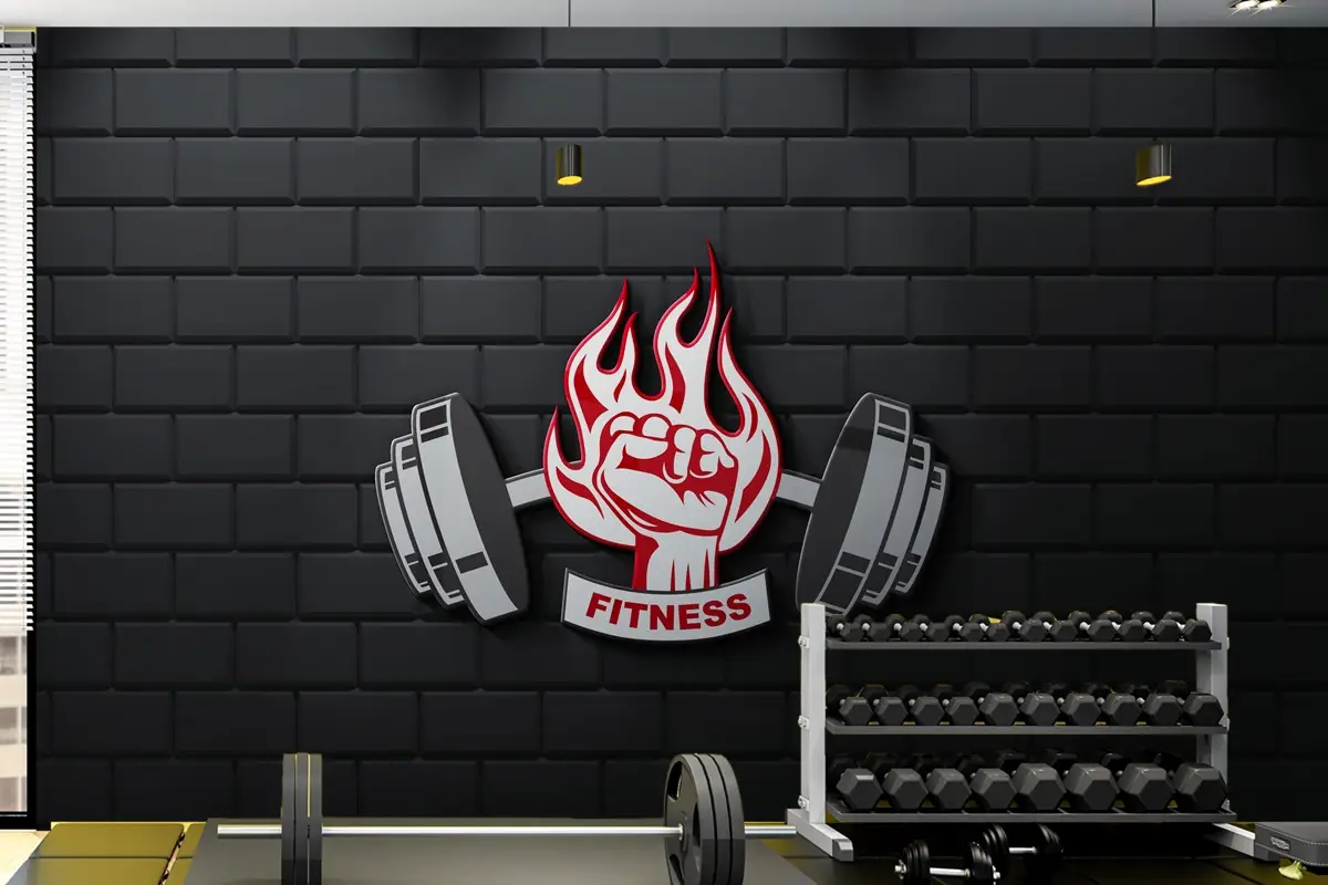 Tuğla Duvarda Fitness Ve Ateş Logolu Duvar Kağıdı