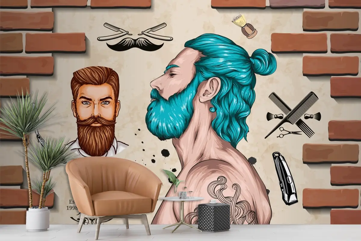 Tuğla Taş Duvar Mavi Saç Erkek Berber Duvar Kağıdı
