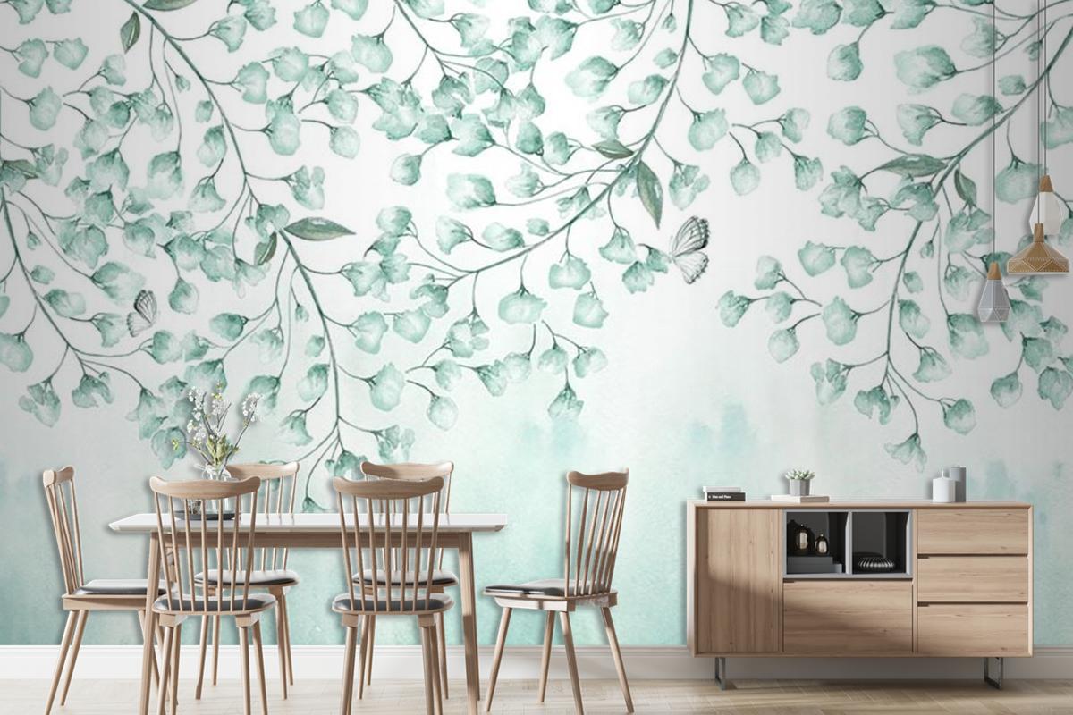 Turkuaz Yapraklar Duvar Kağıdı Yaprak Desenli Duvar Kağıdı