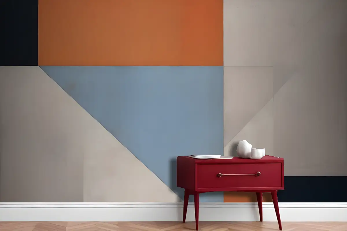 Turuncu Mavi Ve Gri Antre Hol Koridor Duvar Kağıdı Dahil Çeşitli Şekil Ve Renklerle Geometrik Soyut Kompozisyon