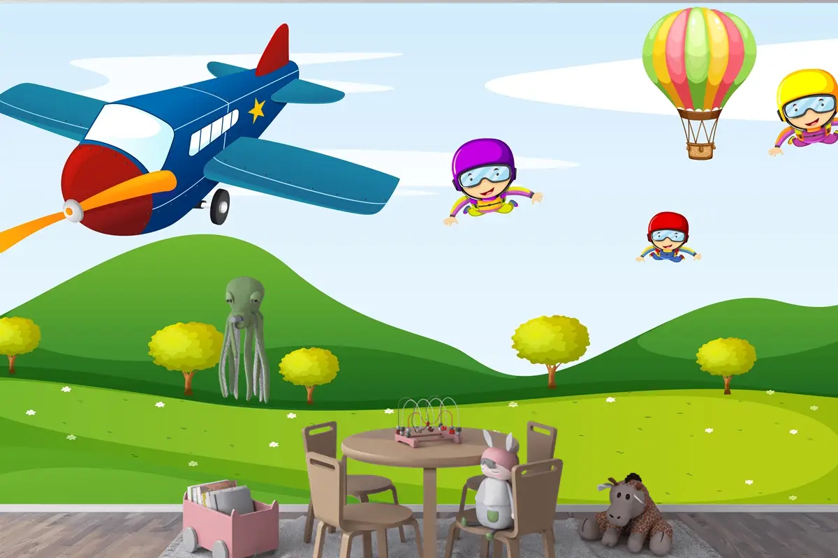 Uçak Ve Gökyüzü Etkinliği Çocuk Odası Duvar Kağıdı