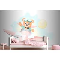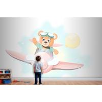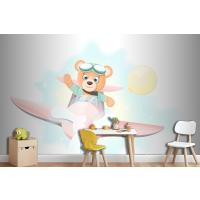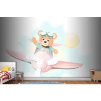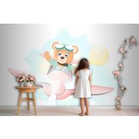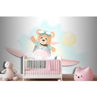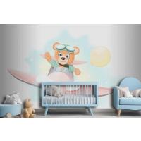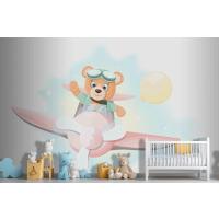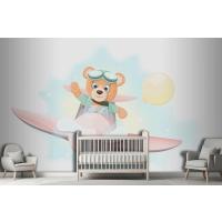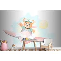 Uçakta Uçan Mutlu Ayıcık Çocuk Odası Duvar Kağıdı