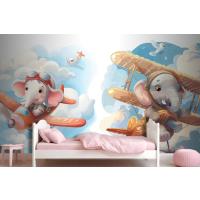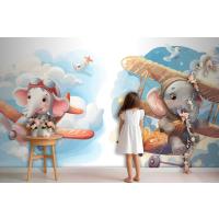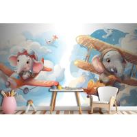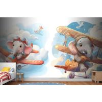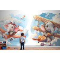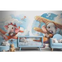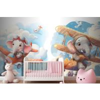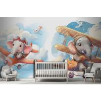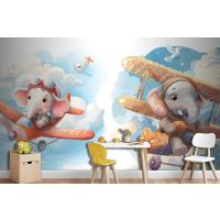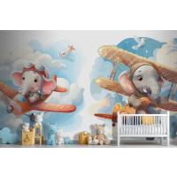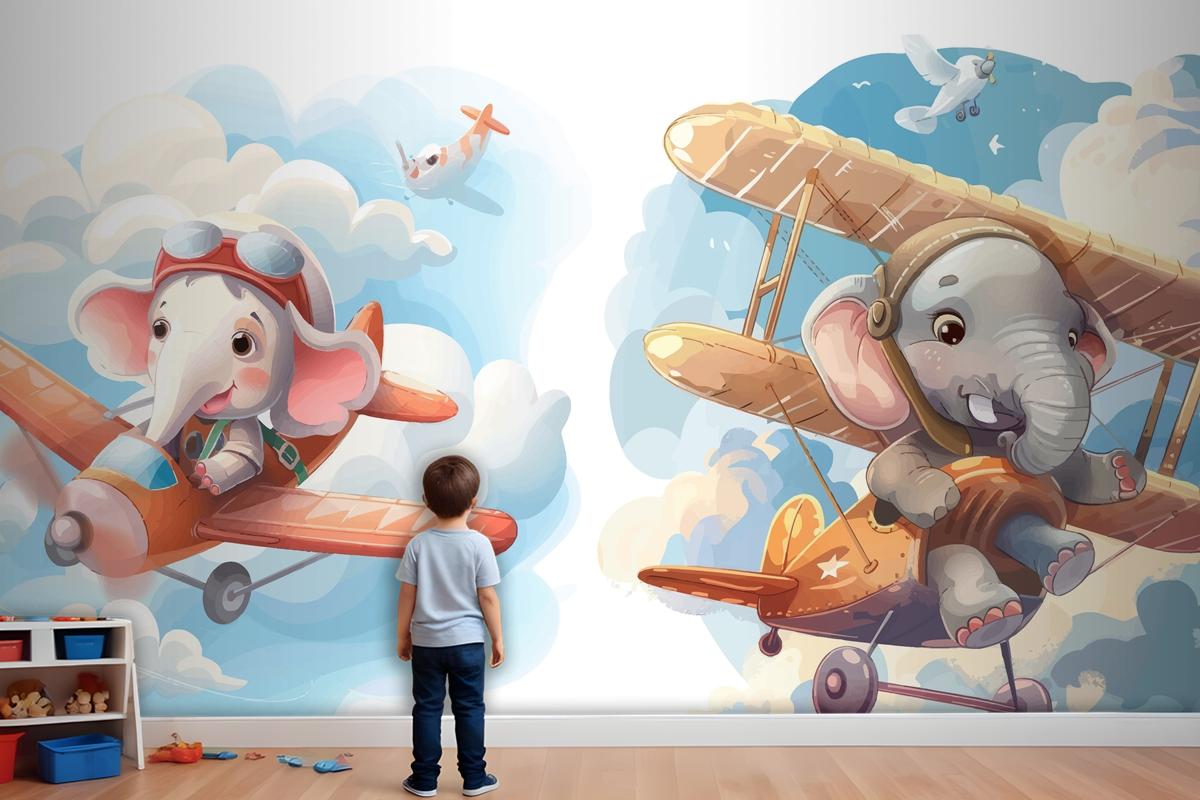 Uçaktaki Küçük Fil Çocuk Odası Duvar Kağıdı