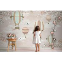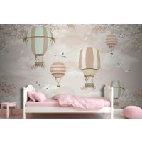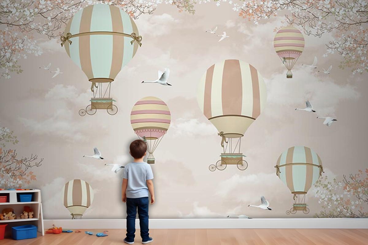 Uçan Balonlar Çiçekler Ve Kuşlar Çocuk Odası Duvar Kağıdı