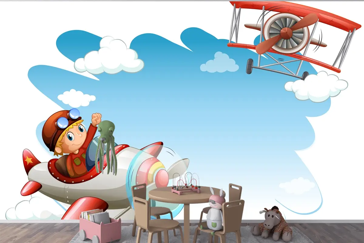 Uçan Jetler Çerçeve Çocuk Odası Duvar Kağıdı
