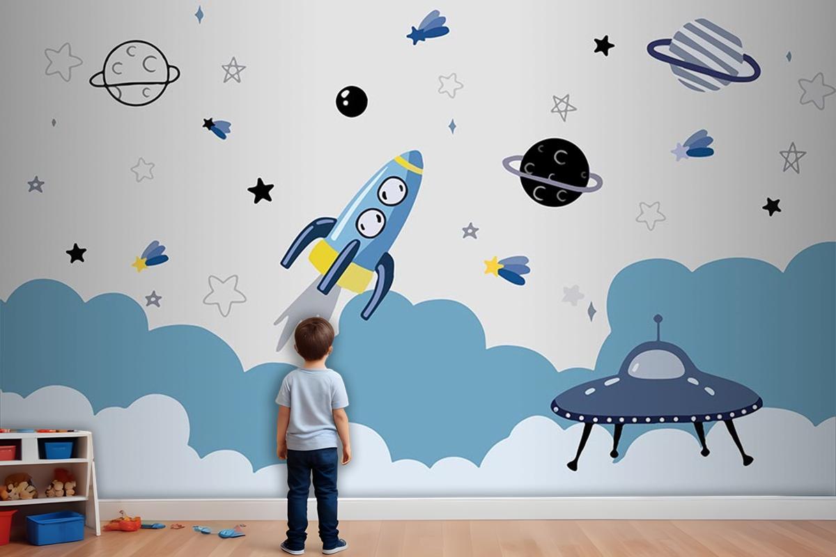 Uzay Temalı Çocuk Odası Duvar Kağıdı Astronot Çocuk Odası Duvar Kağıdı