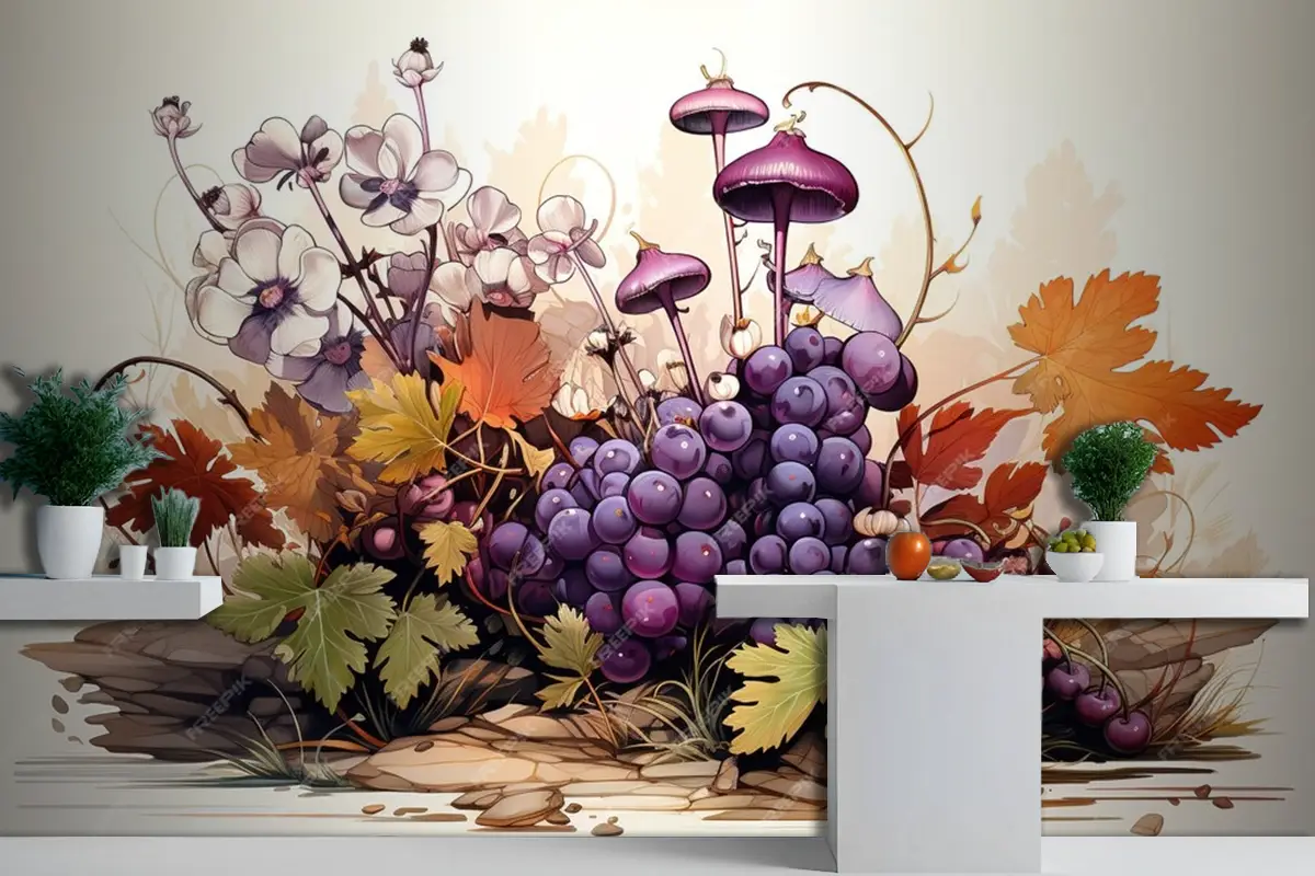 Üzüm Dikişsiz Desen Meyve Arka Plan Suluboya Mutfak Duvar Kağıdı