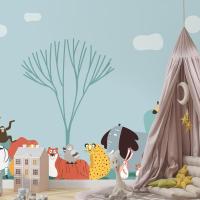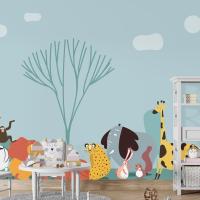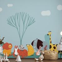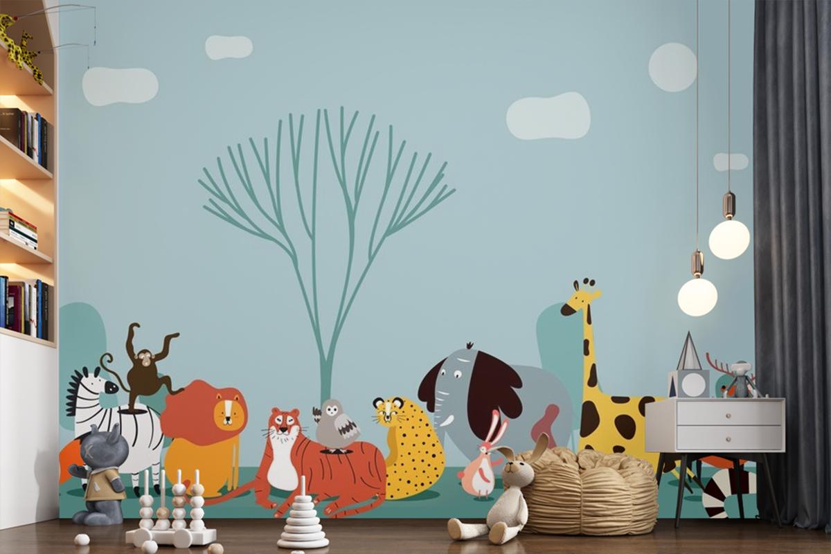 Vahşi Hayvanların Sevimli Grubu Çocuk Odası Duvar Kağıdı