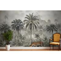 Vahşi Leopar Duvar Kağıdı Ile Vintage Egzotik Manzara