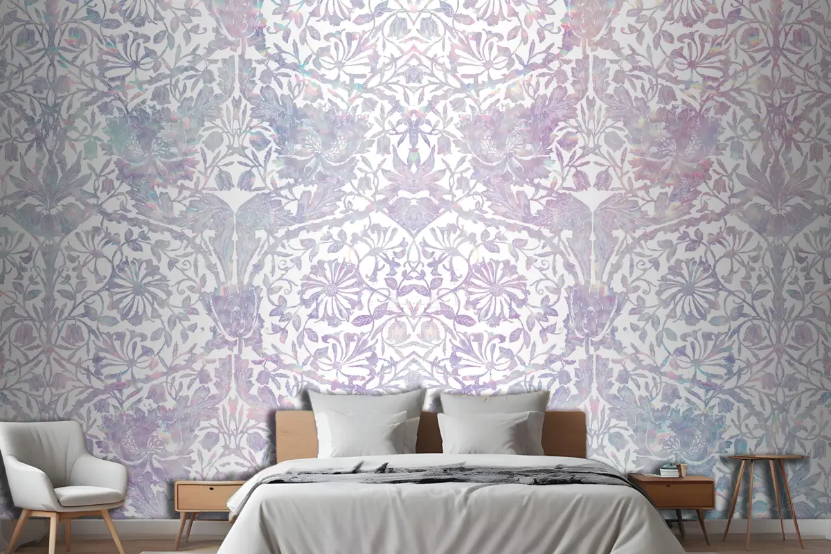 Vintage Çiçek Holografik Desenli Yatak Odası Duvar Kağıdı