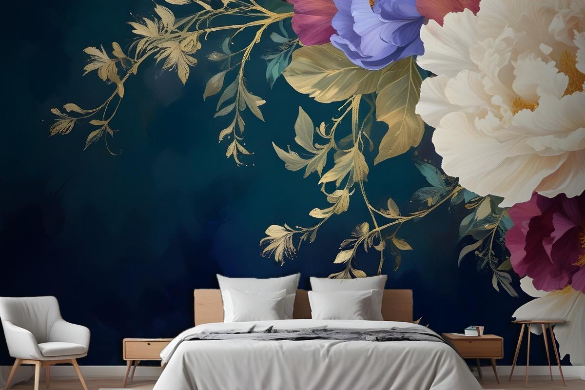 Vintage Çiçekli Sanat Yatak Odası Duvar Kağıdı