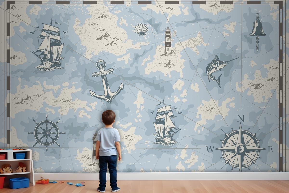 Vintage Denizcilik Eski Harita Çocuk Odası Duvar Kağıdı