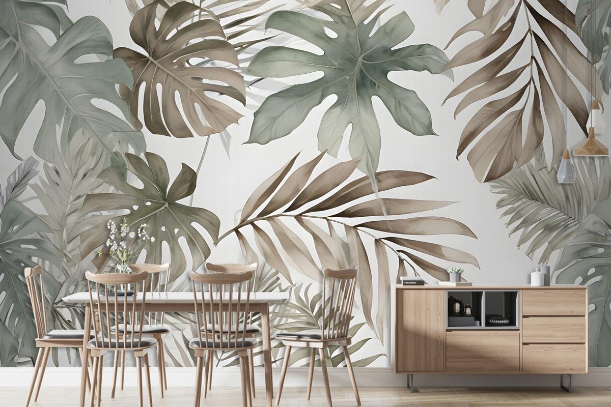Vintage Muz Ve Palmiye Yaprakları Duvar Kağıdı