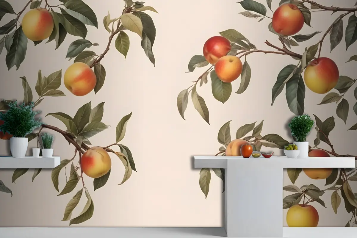 Vintage Nötr Botanik Şeftali Ağacı Mutfak Duvar Kağıdı