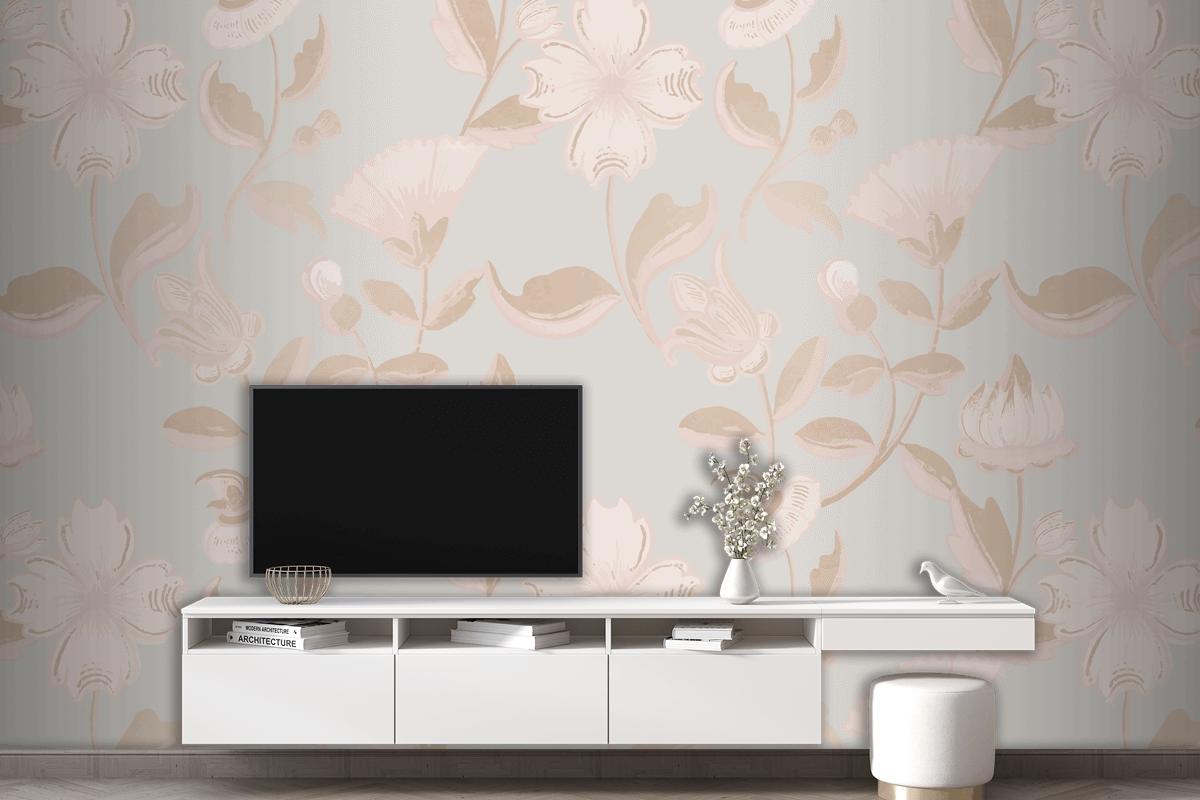 Vintage Nötr Çiçek Desenli Duvar Kağıdı