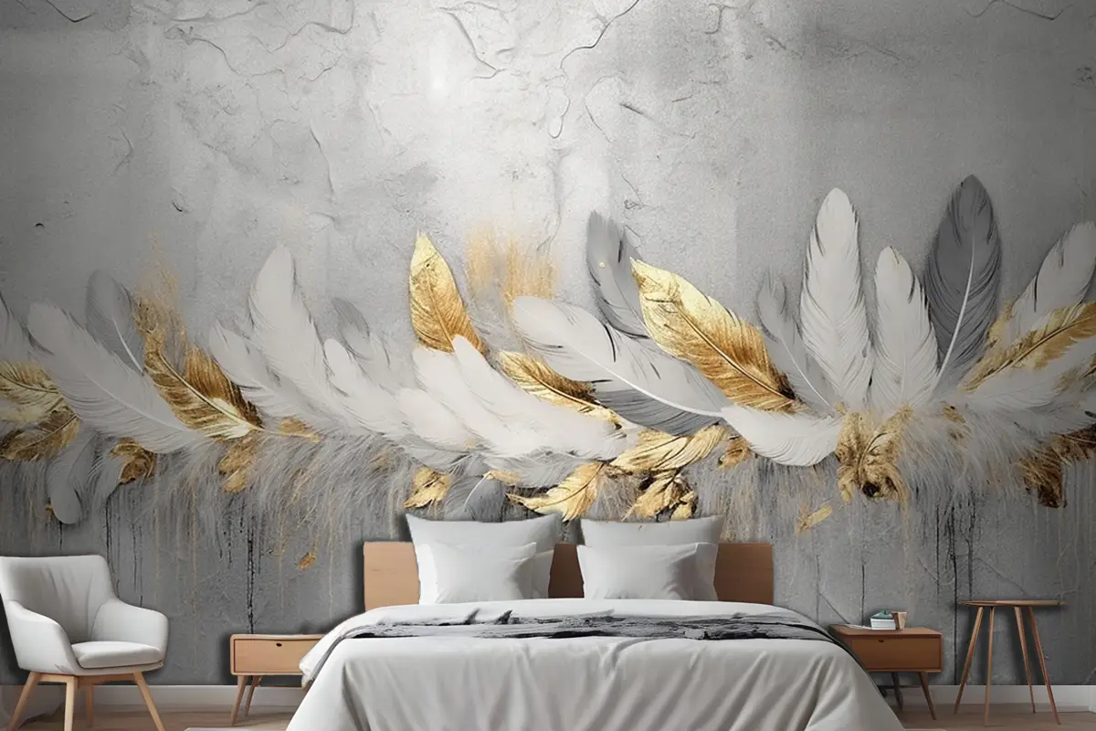 Vintage Tüyler Mavi Altın Fırça Darbeleri Yatak Odası Duvar Kağıdı