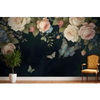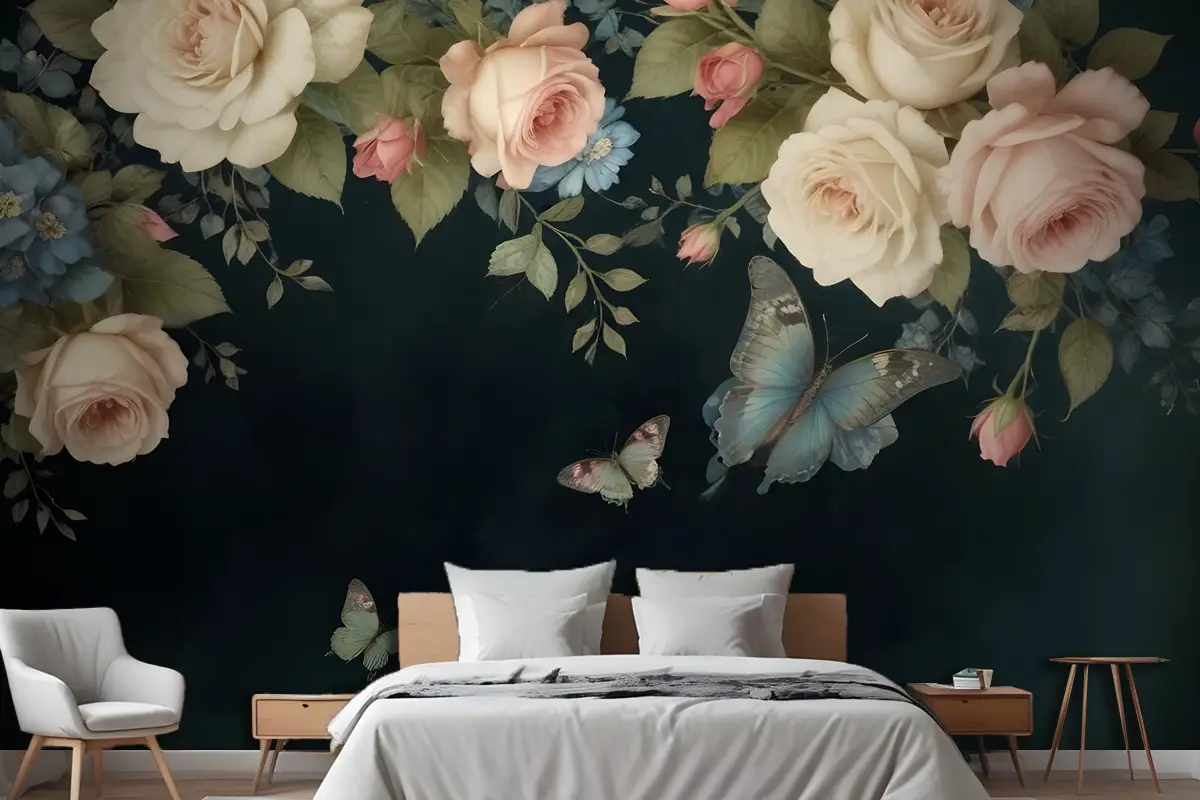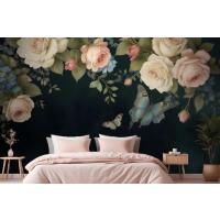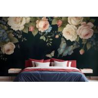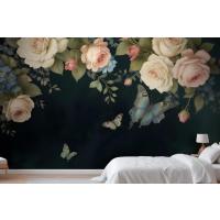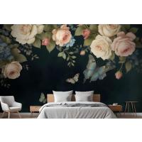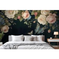 Vintage Yağlıboya Koyu Güller Yatak Odası Duvar Kağıdı