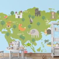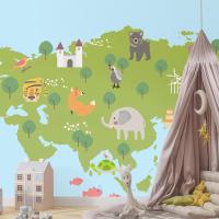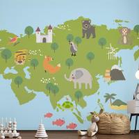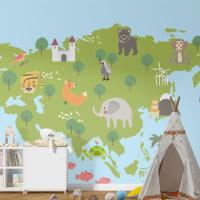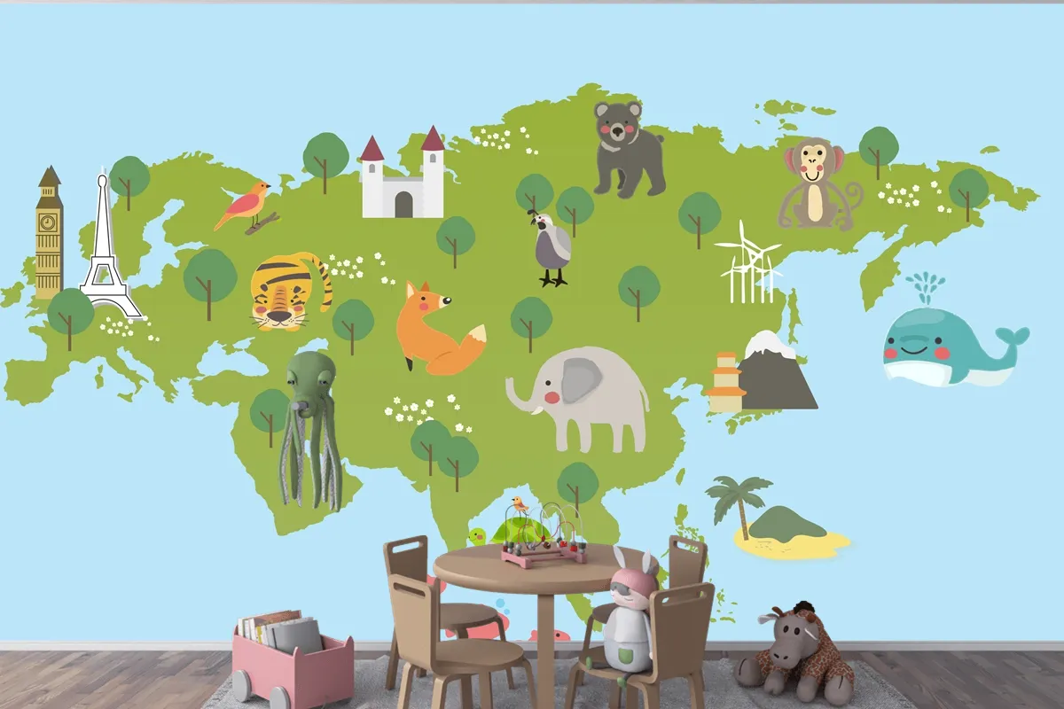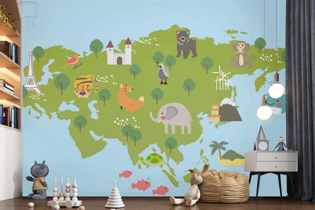 Yaban Hayatı Habitatlarının Çizim Stili Seti Çocuk Odası Duvar Kağıdı