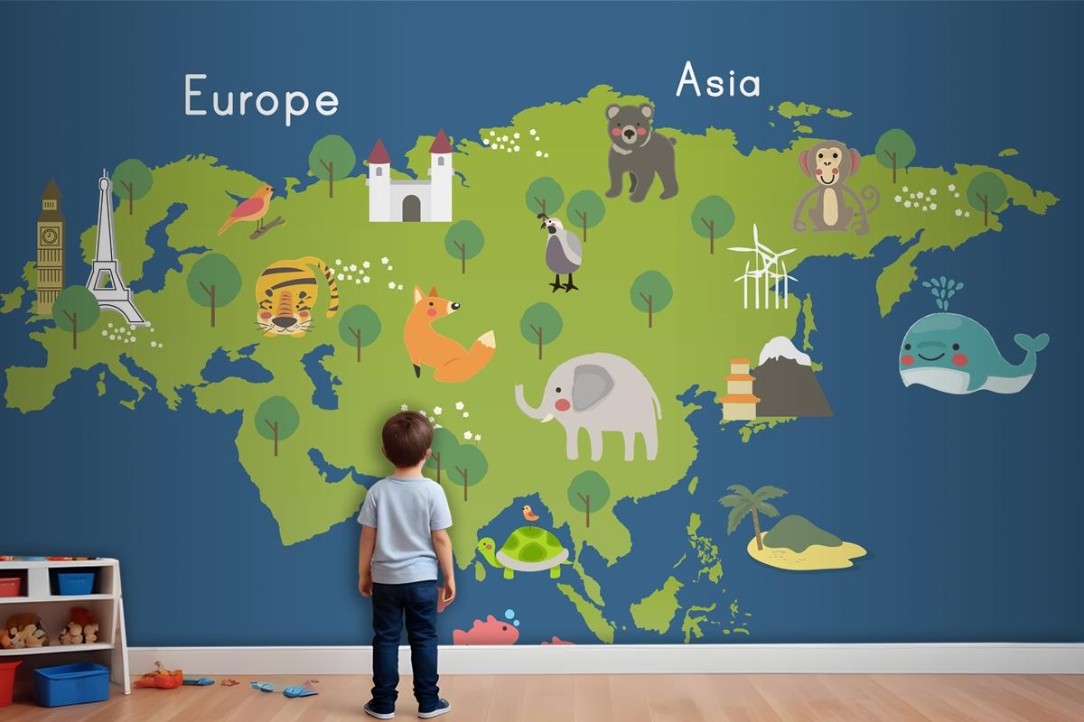 Yaban Hayatı Habitatlarının Çizim Stili Seti Çocuk Odası Duvar Kağıdı