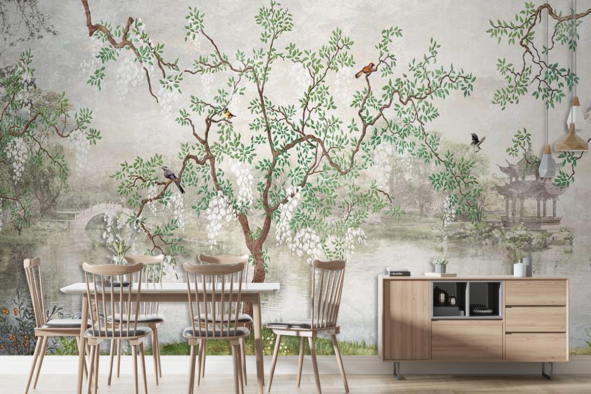 Yağlı Boya Tarz Ağaçlar ve Yapraklar Duvar Kağıdı
