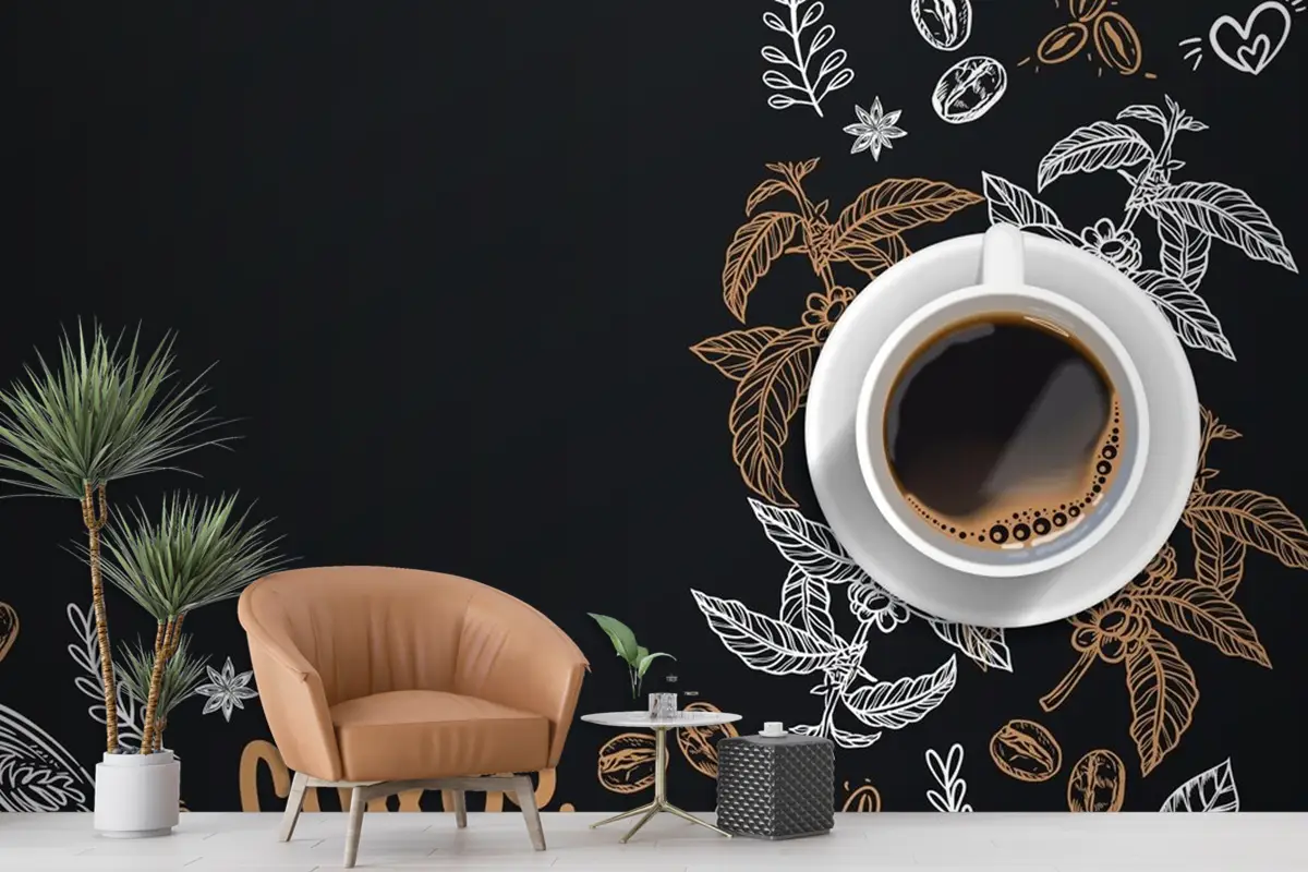 Yaprak Çizimleri Ve Gerçekçi Kahve Cafe Duvar Kağıdı