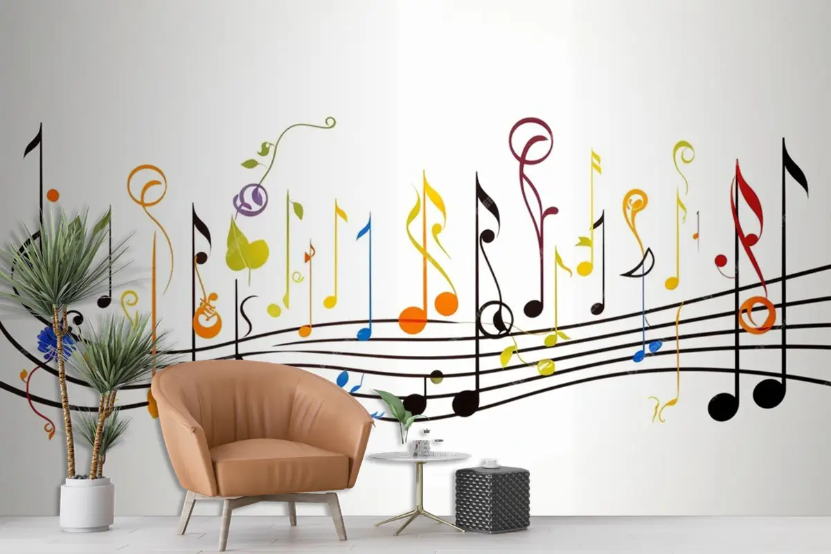 Yaprak Tasarımlarıyla Müzik Notaları Duvar Kağıdı